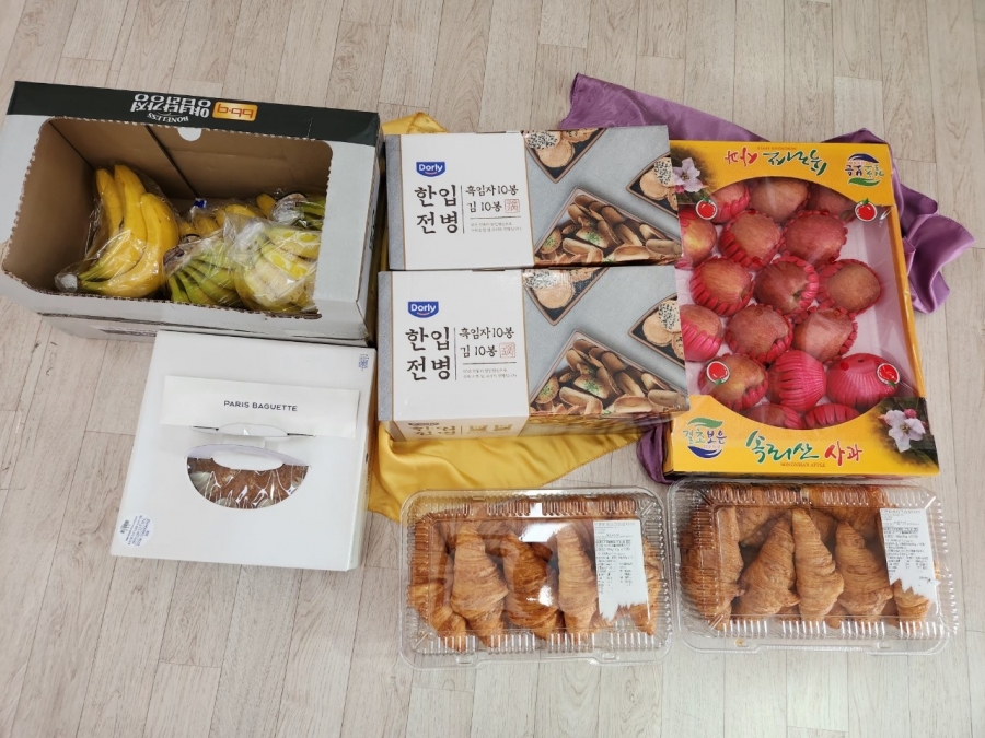 입주자 정** 님의 보호자께서 바나나, 케이크, 전병, 크루아상, 사과를 후원해주셨습니다. 후원 감사합니다 ^^