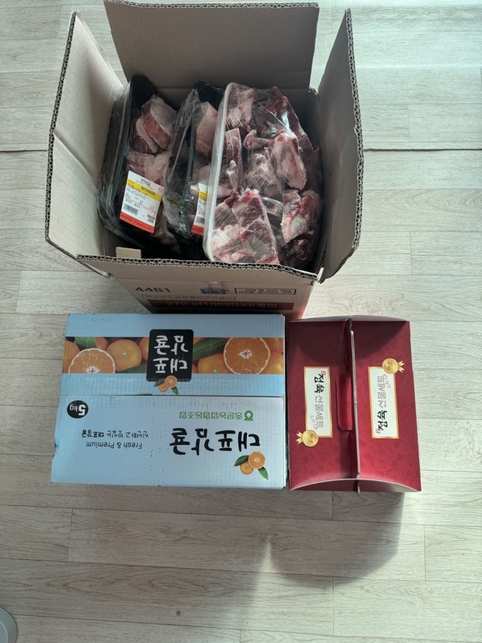입주자 김** 님의 어머님께서 귤 한박스와 정육세트 그리고 사골뼈를 후원해주셨습니다. 후원 감사합니다 ^^