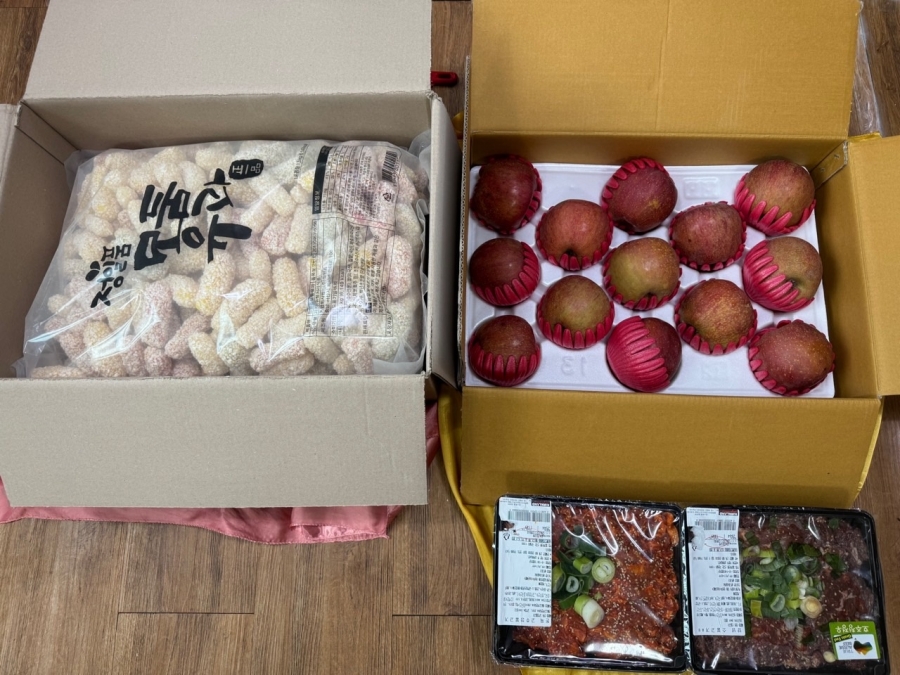 입주자 정** 님의 보호자께서 유과 1박스, 사과 1박스, 소불고기 1팩, 돼지불고기 1팩을 후원해주셨습니다. 후원 감사합니다 ^^