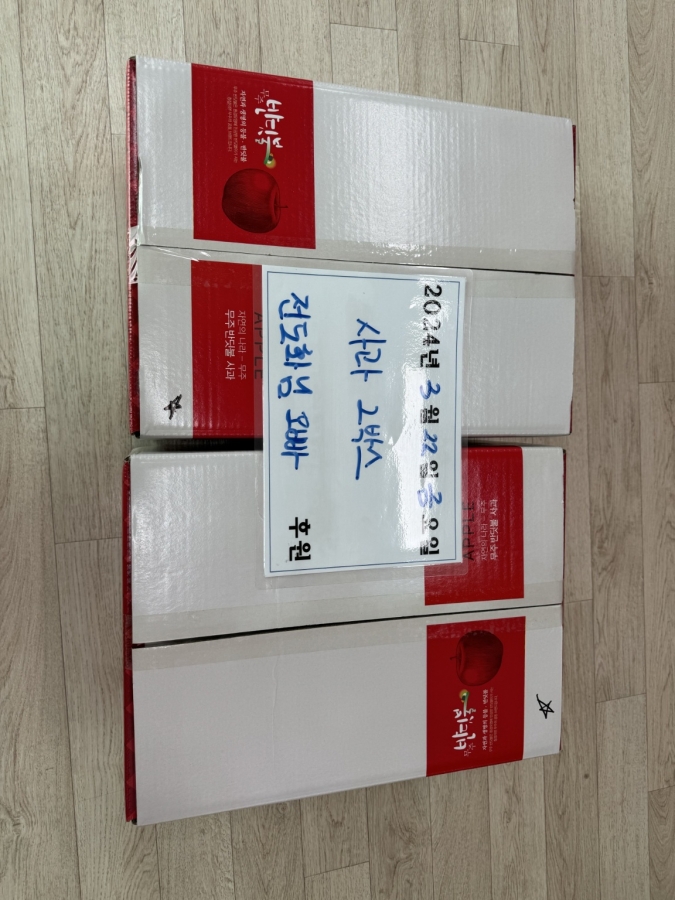 입주자 전** 님의 보호자께서 사과 2박스를 후원해주셨습니다. 후원 감사합니다 ^^