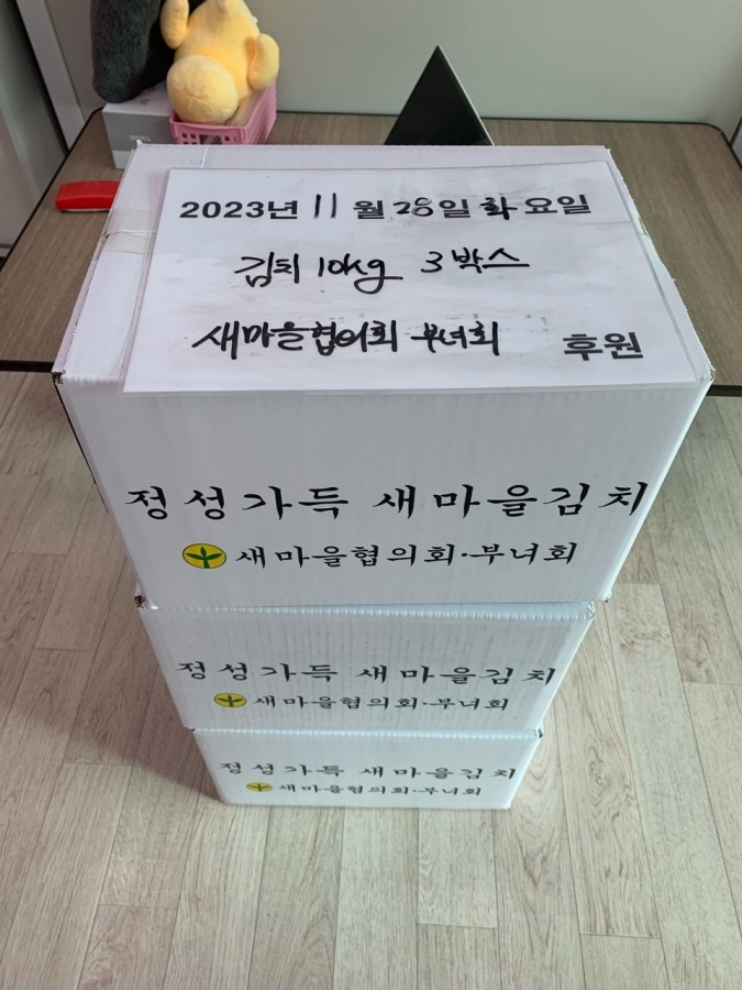 새마을협의회 부녀회에서 김치 10kg(3박스) 후원해 주셨습니다. 후원 감사합니다 ^^