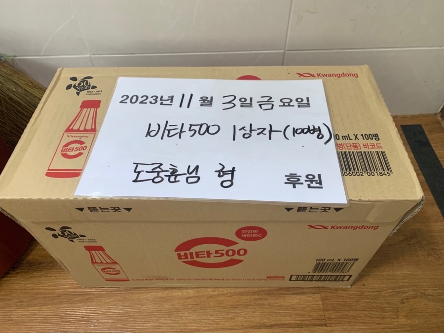 입주자 도** 님의 형제분깨서 비타500 1박스(100병)을 후원해주셨습니다. 후원 감사합니다 ^^