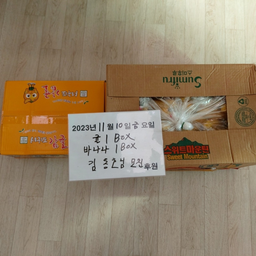 입주자 김** 님의 보호자께서 귤 1박스와 바나나 1박스 후원해 주셨습니다. 후원 감사드립니다 ^^