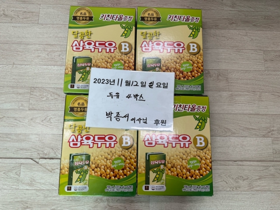 박종서 이사님께서 두유 4박스 후원해주셨습니다. 후원 감사합니다 ^^