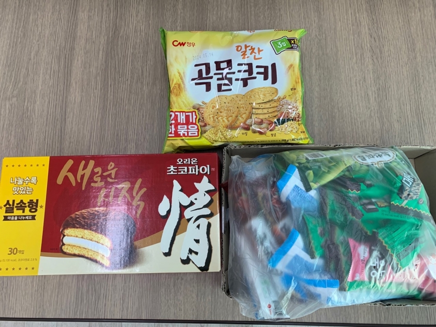 23.06.09 김** 님께서 초코파이 1상자, 오곡쿠키 1상자, 아이스크림 30개 후원해 주셨습니다. 후원해주셔서 감사합니다 ^^