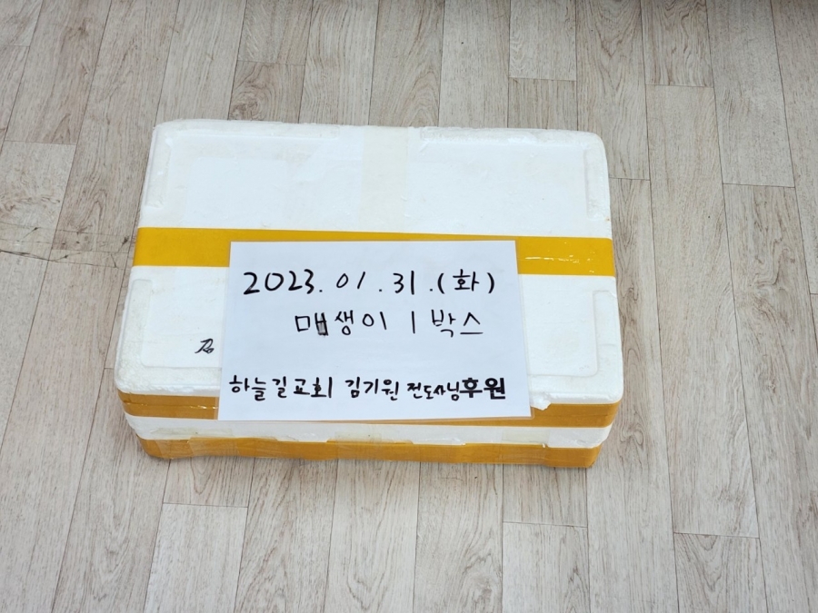 23.01.31 하늘길교회 김기원 전도사님께서 매생이 1박스 후원해 주셨습니다. 후원 감사드립니다.