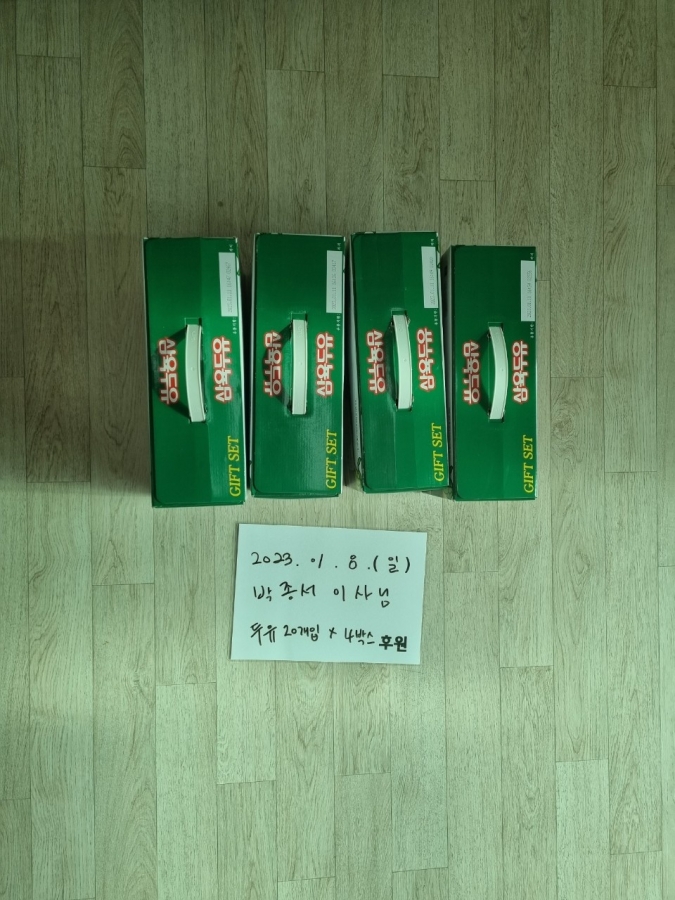 23.01.08 박종서 이사님께서 두유 4박스 후원해 주셨습니다. 후원 감사드립니다.
