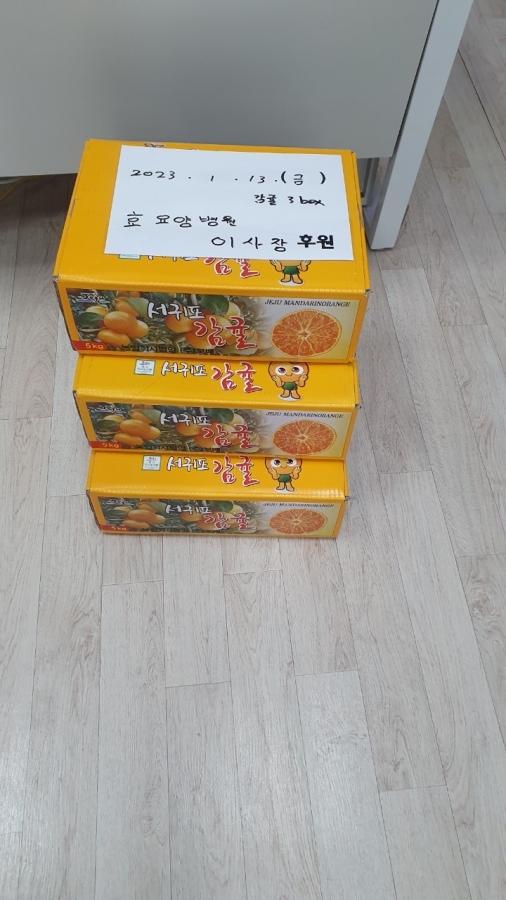 23.01.13 초촌 효 요양병원 이사장님께서 귤 3박스 후원해 주셨습니다. 후원 감사 드립니다.
