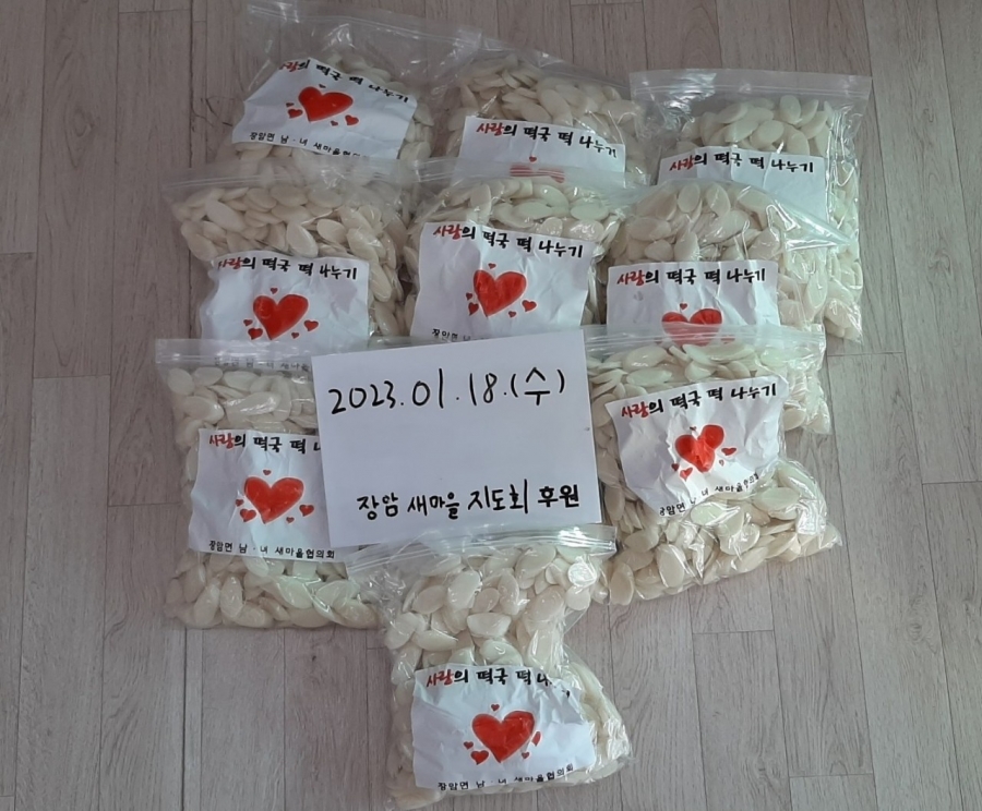 23.01.18 장암새마을지도회에서 떡국떡 10봉지 후원해 주셨습니다. 후원감사드립니다.