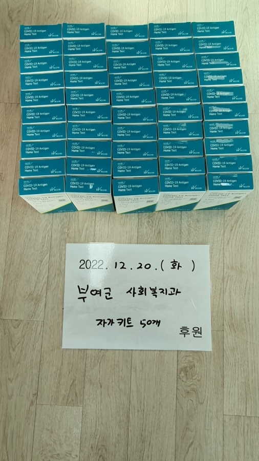 22.12.20 부여군 사회복지과에서 자가키트 50개 후원해 주셨습니다, 후원 감사드립니다.