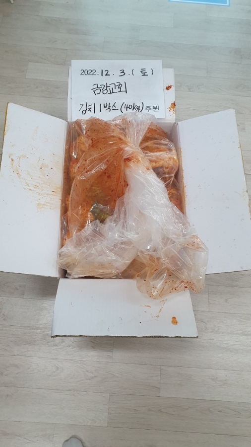 22.12.03 금강교회에서 김치 40KG 후원해 주셨습니다. 후원 감사드립니다.