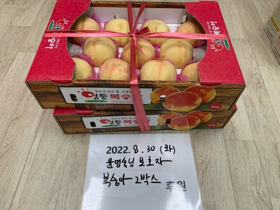 윤*숙 님 보호자님께서 복숭아 2박스 후원해주셨습니다. 후원 감사드립니다.