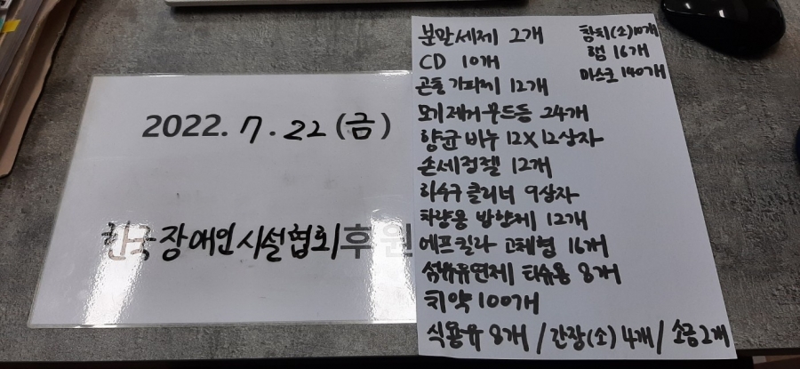 22.07.22 한국장애인시설협회에서 각종 물품 후원해주셨습니다. 후원감사드립니다.
