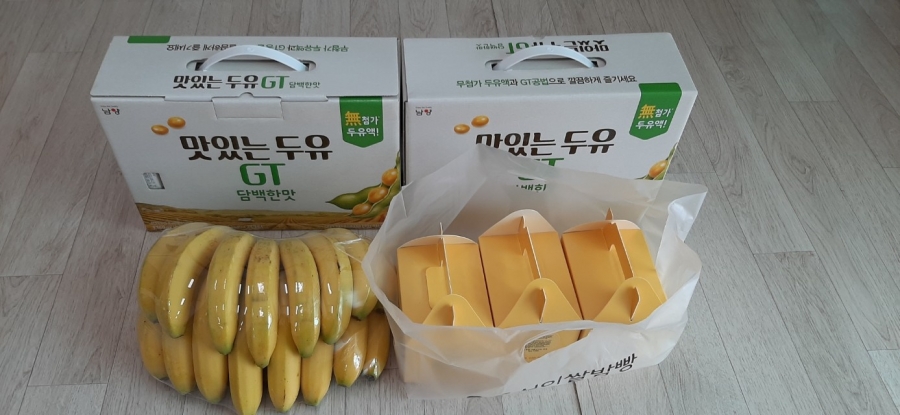 (두유 2박스, 바나나, 밤빵 3박스)