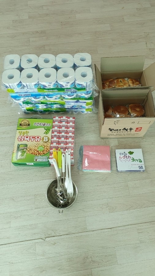 (휴지, 빵, 두유, 행주, 일회용 장갑, 식기류)