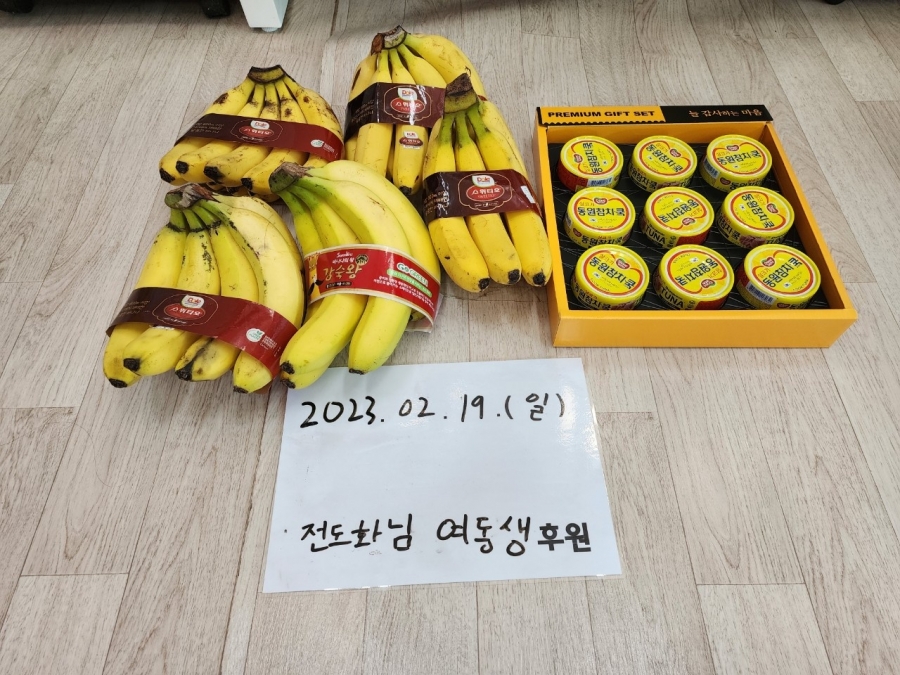 23.02.19 전*화 님 보호자님께서 바나나, 참치캔 후원해 주셨습니다, 후원 감사드립니다.