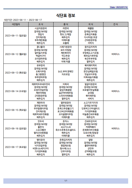 식단표(23.06.11~23.06.17)