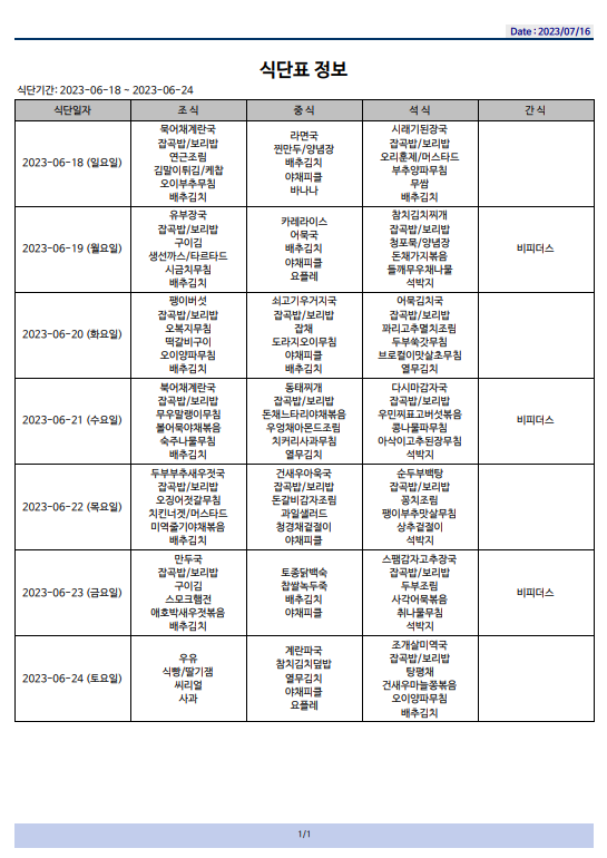 식단표(23.06.18~23.06.24)입니다
