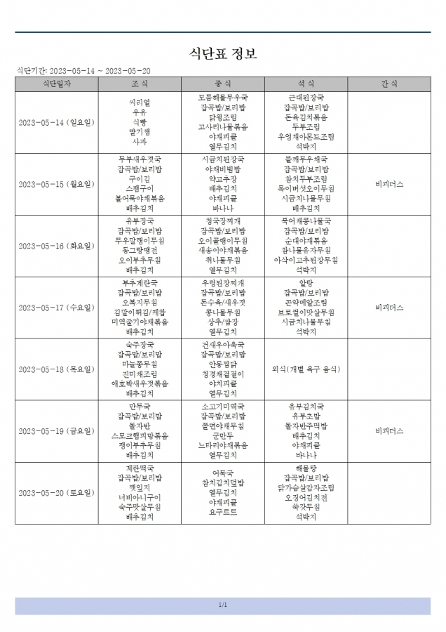 식단표(23.05.14~23.05.20)