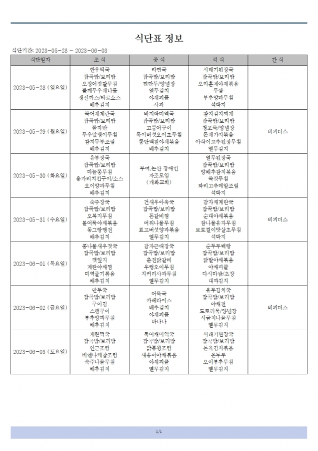 식단표(23.05.28~23.06.03)