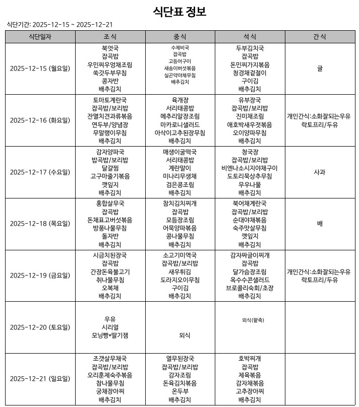 식단표(25.12.15.~25.12.21.)