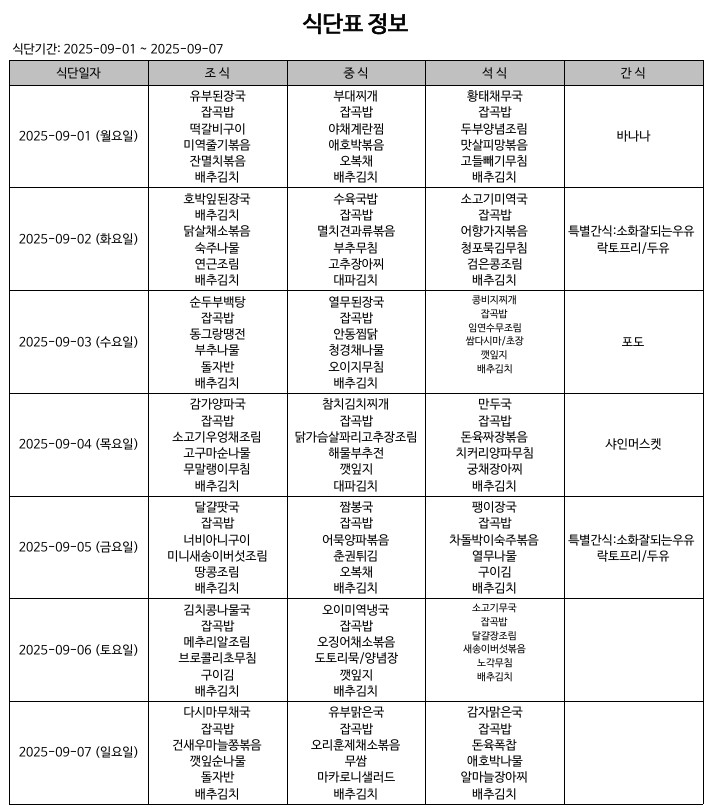 식단표(25.09.01.~25.09.07.)