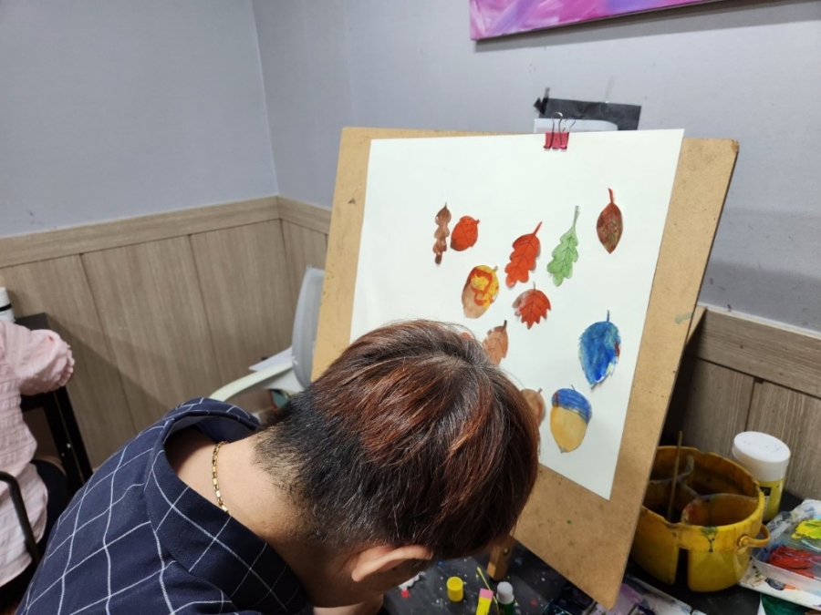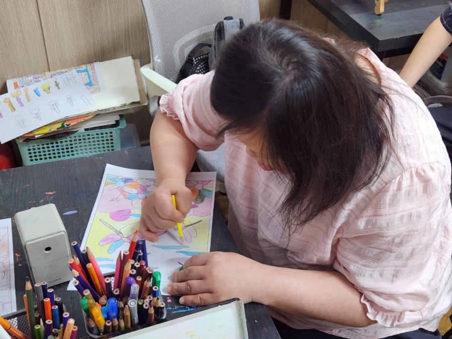 매번 미술 선생님께서 새로운 도안을 준비해 주셔서 입주자분들의 미적 감각을 일깨워 주십니다. 다양한 미술 기법을 익히며, 여러 가지 방법으로 그림을 그리는 재미도 느끼고 계십니다.