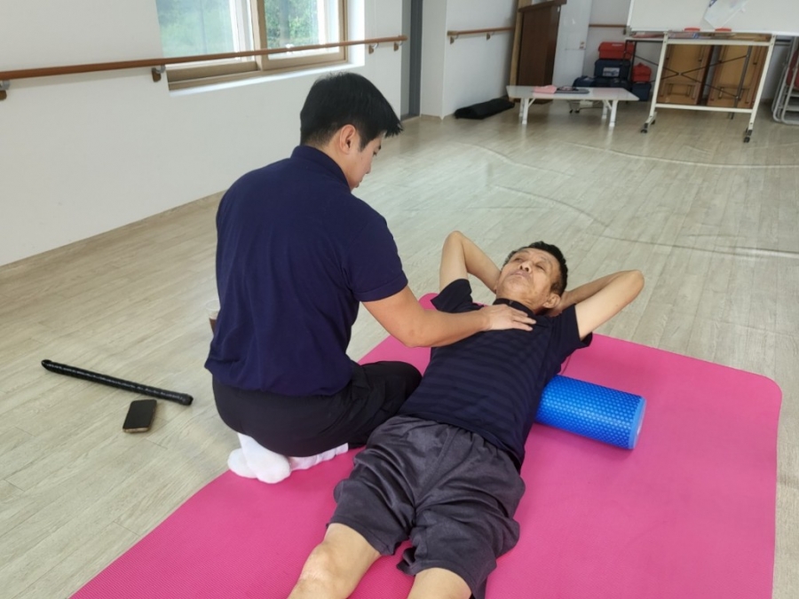 전** 님은 전신 운동을 통해 근력을 강화하는 재활치료를 받고 계시고,