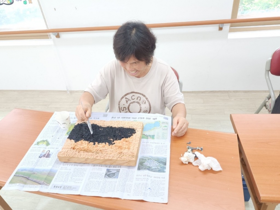 한 달에 한 번 진행되는 서각 프로그램을 이번에도 함께하였습니다. 이번 시간에는 직접 깎은 나무에 색을 입히며 즐거운 시간을 가졌습니다 ^^
