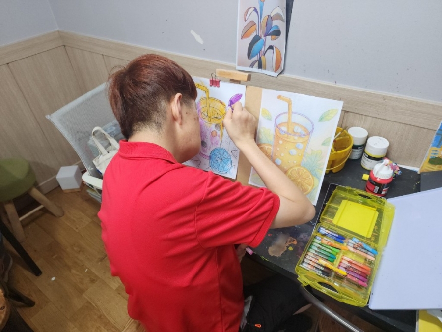 매번 미술 선생님께서 새로운 도안을 준비해 주셔서 입주자분들의 미적 감각을 일깨워 주시고 있습니다 다양한 미술 기법을 익히며, 여러 가지 방법으로 그림을 그리는 재미도 느끼고 계십니다.