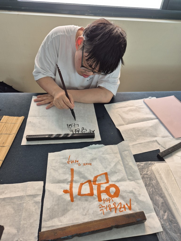 매주 1회, 정** 님과 이** 님께서는 홍산에 위치한 서예학원에 다니고 계십니다. 차분한 마음으로 서체를 익히며 열심히 연습에 임하고 계시고, 갈수록 실력이 눈에 띄게 늘고 있어 멋진 서체가 더욱 돋보입니다!