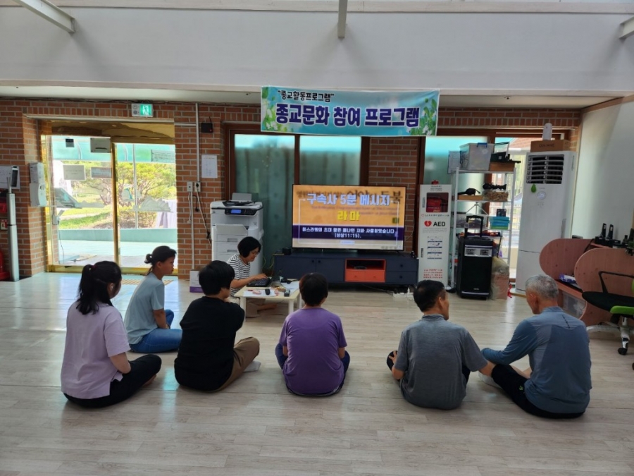 입주자분들과 함께 다목적실에서 종교활동 시간을 가졌습니다.
