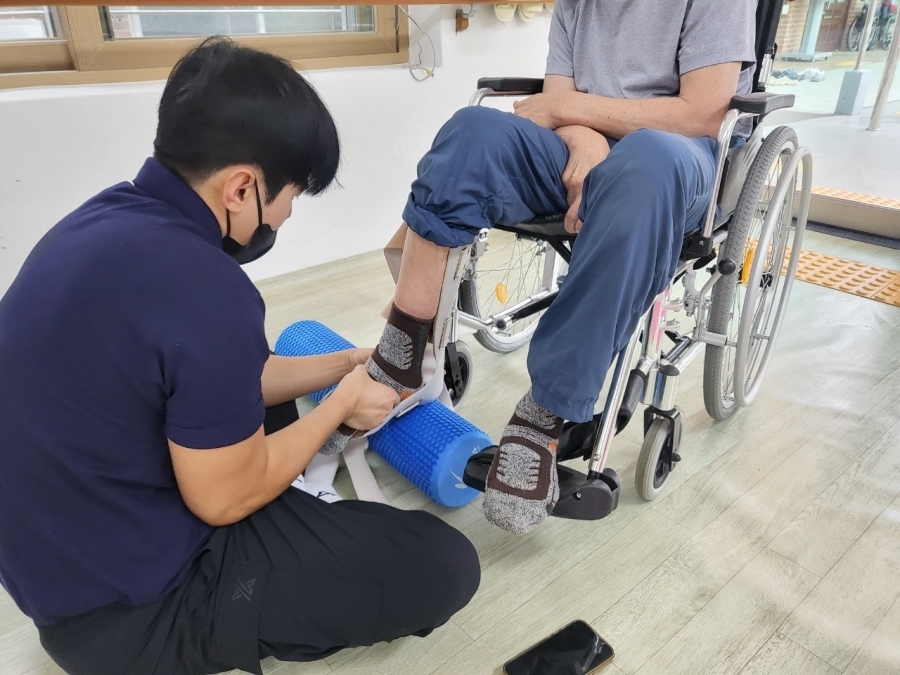 신** 님은 발목 스트레칭과 함께 보조기를 착용한 보행 연습을 열심히 하고 계십니다.
