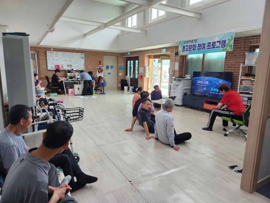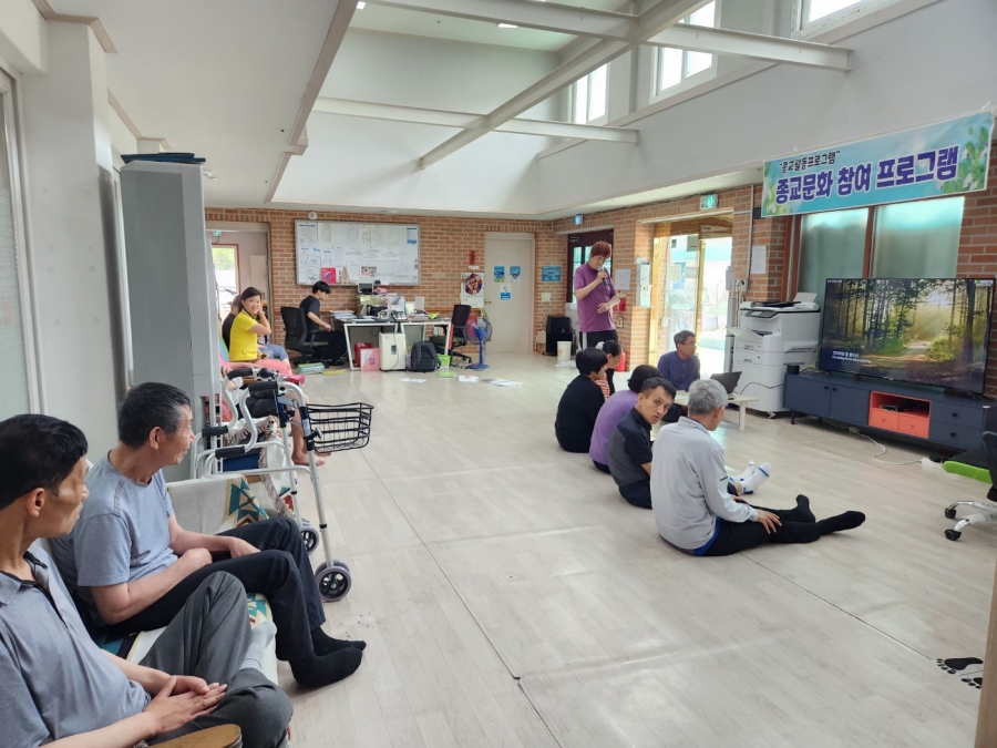 입주자분들과 함께 다목적실에서 종교활동 시간을 가졌습니다. 각자 두 곡씩 찬송가를 부르며 마음을 모았고, 이후에는 원장님께서 준비해주신 짧은 영상을 함께 시청하며 뜻깊은 시간을 보냈습니다.