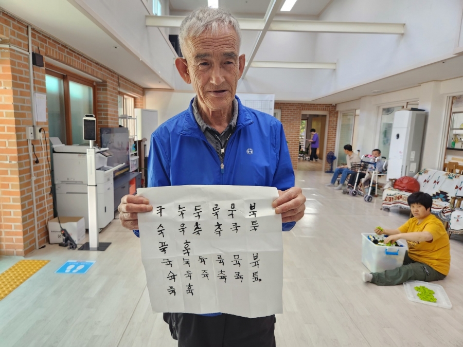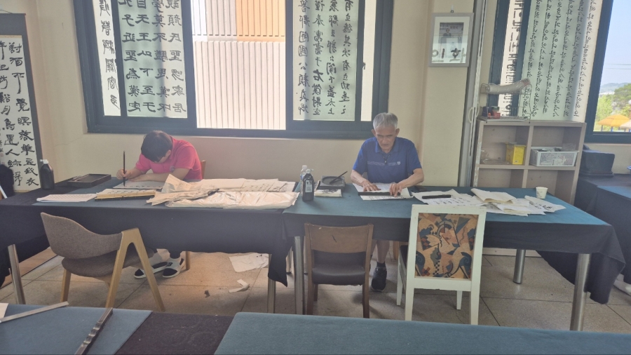 차분한 마음으로 붓글씨 연습에 집중하고 계십니다.