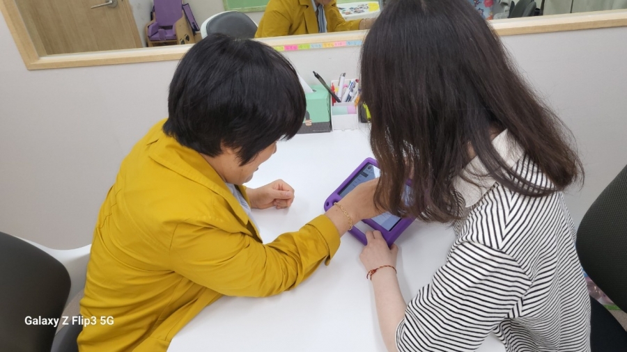 태블릿pc를 사용하여 본인이 말하고자 하는 것이 무엇인지, 어떻게 상대방에게 전달해야하는지