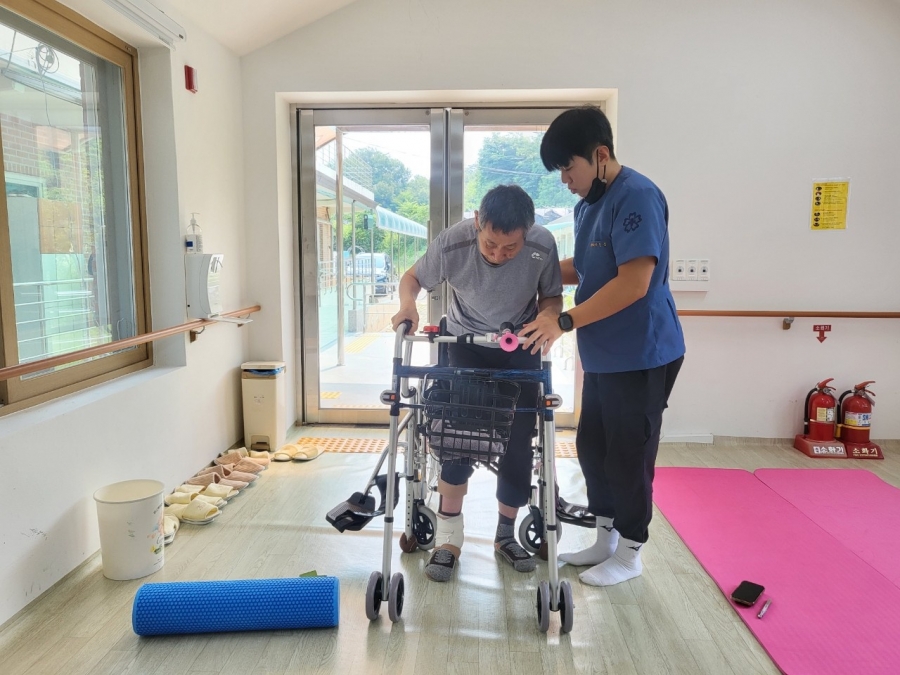 전** 님은 전신 운동을 통해 근력을 강화하는 재활치료를 받고 계시고,