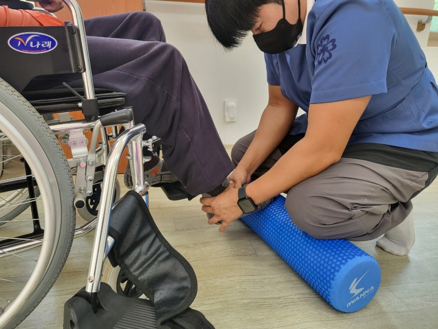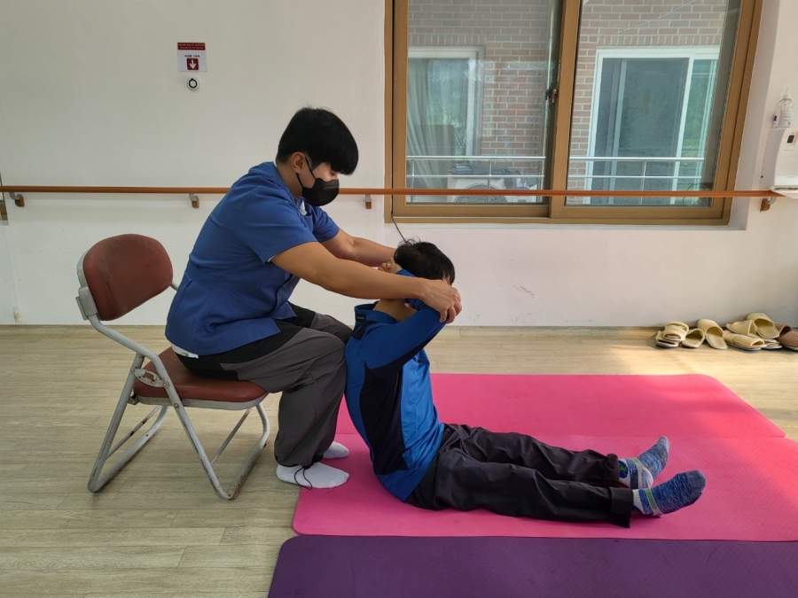 매주마다 물리치료사 선생님께서 방문하여 전** 님과 신** 님께 재활치료를 진행하십니다.