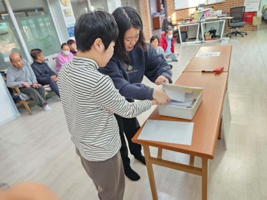올해 자치회의를 이끌어갈 회장을 선출하기 위해 투표하는 시간을 가졌습니다.