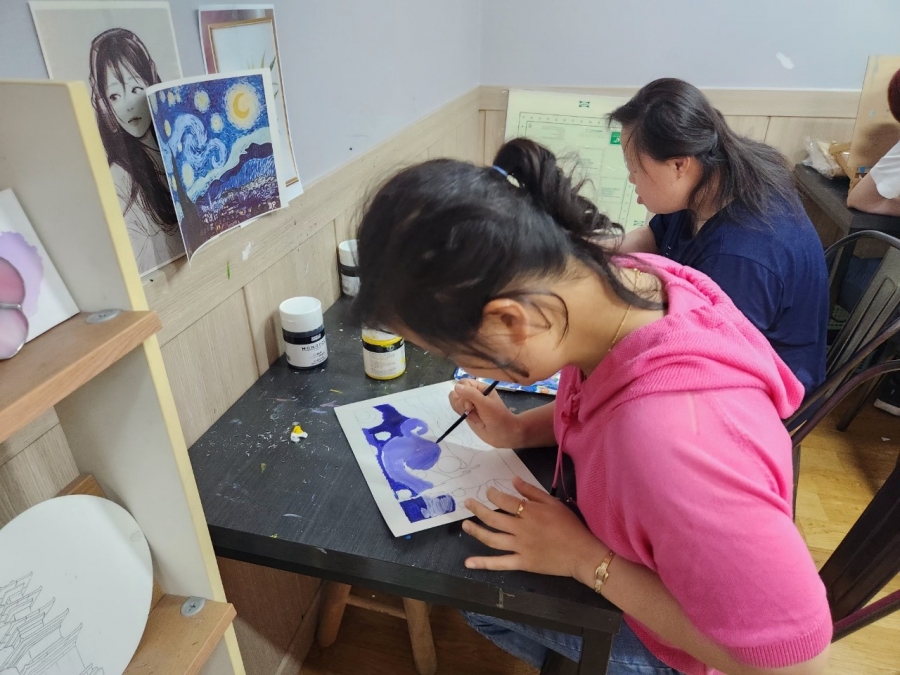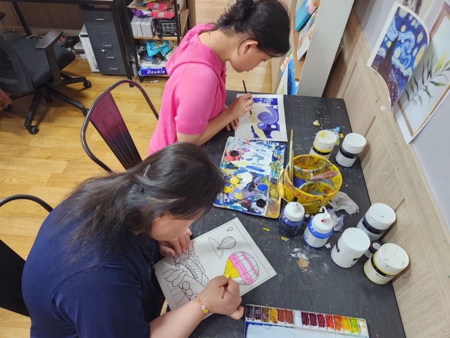 조**, 윤** 님은 세심한 관찰을 통해 그림을 모방하는 법을 연습하시고 계십니다.