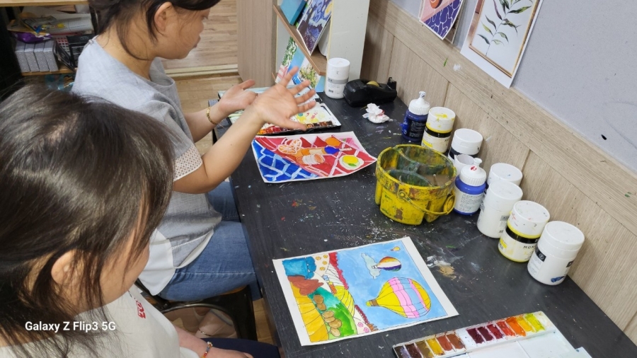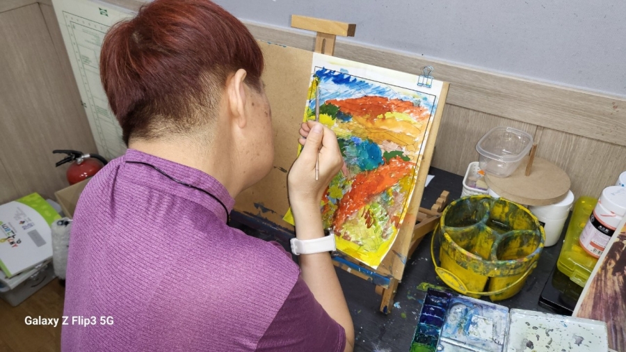 천**, 윤**, 조** 님은 매주 미술학원에서 창작활동을 하는 개별서비스를 하고 계십니다.