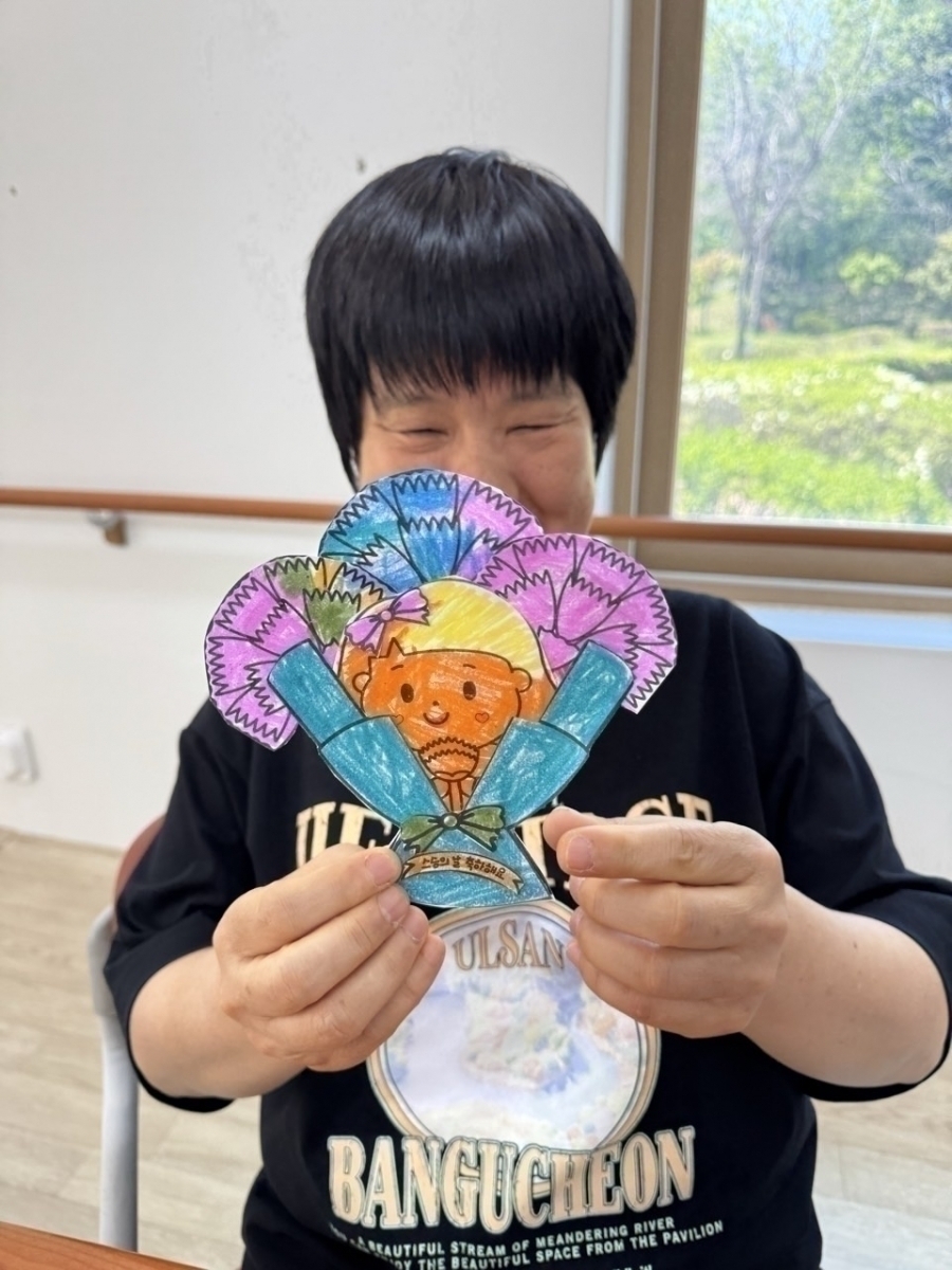 카네이션을 예쁘게 색칠하여 브로치처럼 꾸며줍니다.