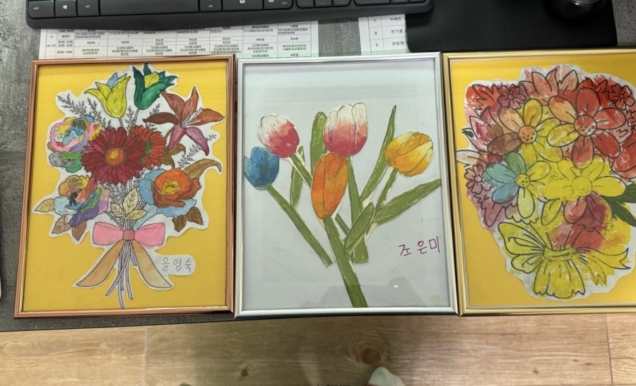 이번에는 꽃그림을 색칠하시고 앨범에 장식을 했습니다.