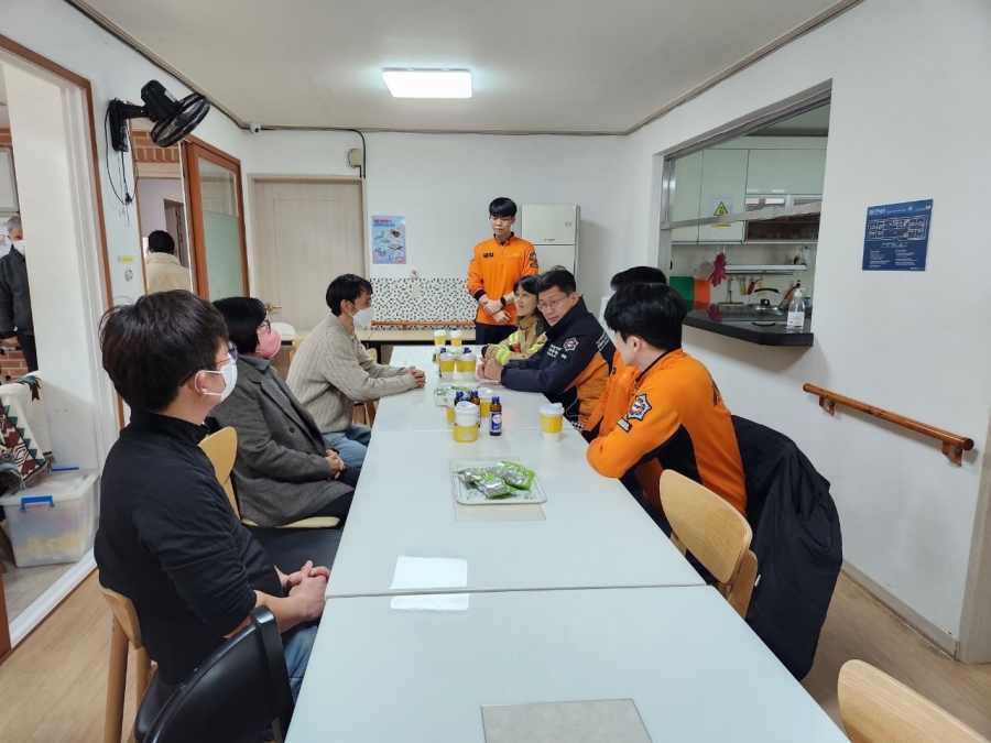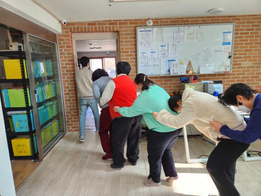 갑자기 불이 날 수도 있는 상황에 대비하여 입주자들과 안전교육, 소방 훈련, 대피 훈련을 진행하였습니다.