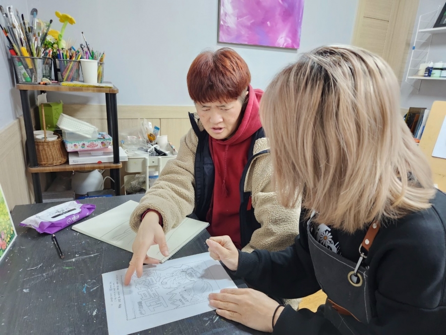 내년에 미술을 하고 싶으시냐는 물음에 기대되는 목소리로 "네~"라고 대답해 주셨습니다.