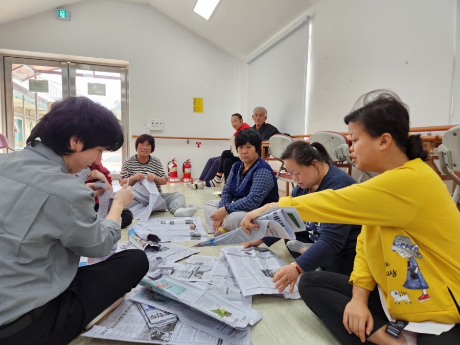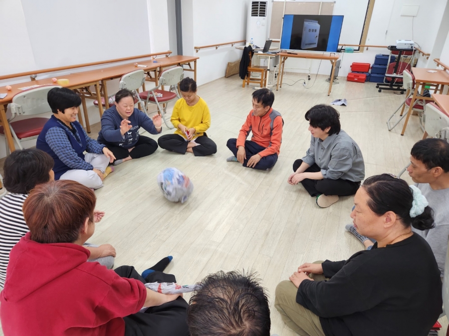 커다란 신문지 공을 만들어 서로를 위한 말을 건네는 시간을 가졌습니다.