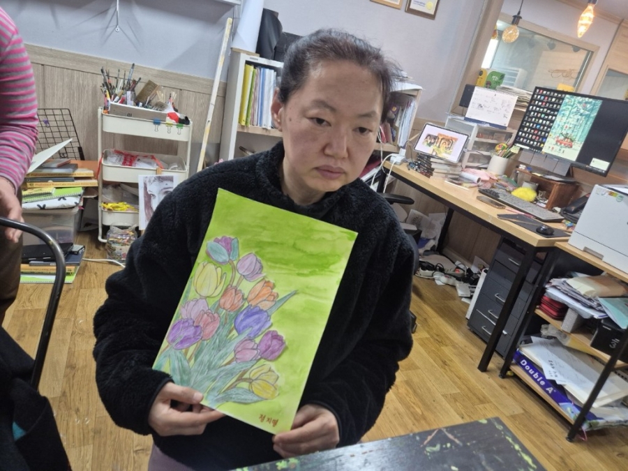 어떤 색을 선택할지 한참을 고민하시던 정**, 윤** 님은 작품을 완성하기 위해 끝까지 집중하는 모습을 보여주셨습니다.