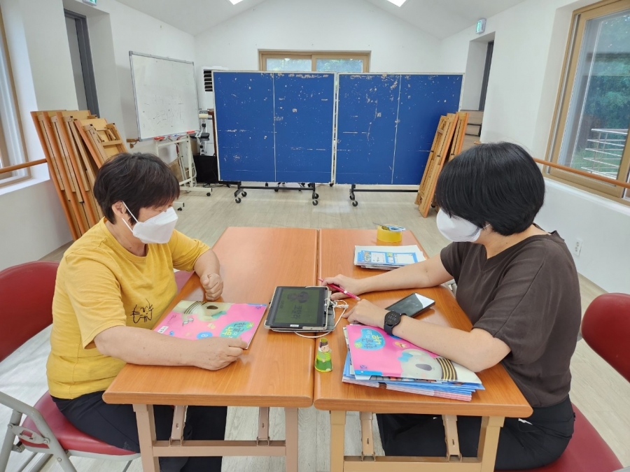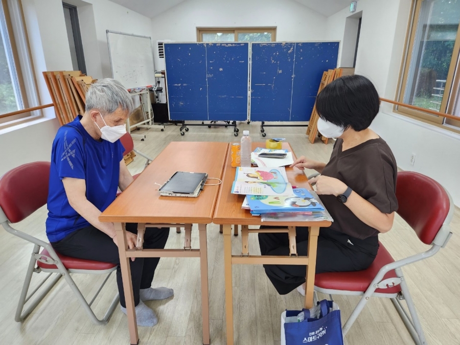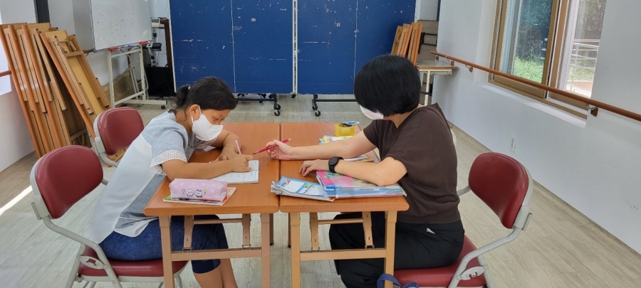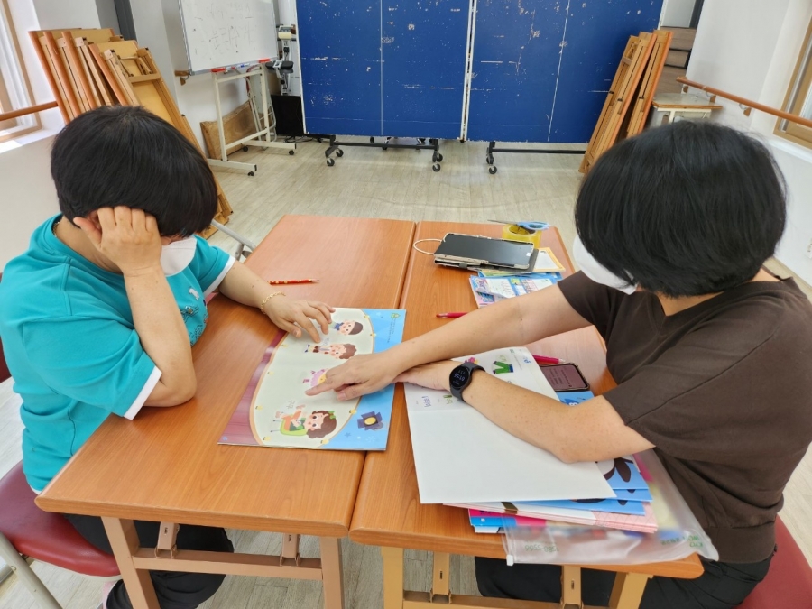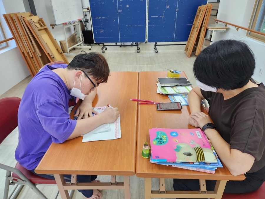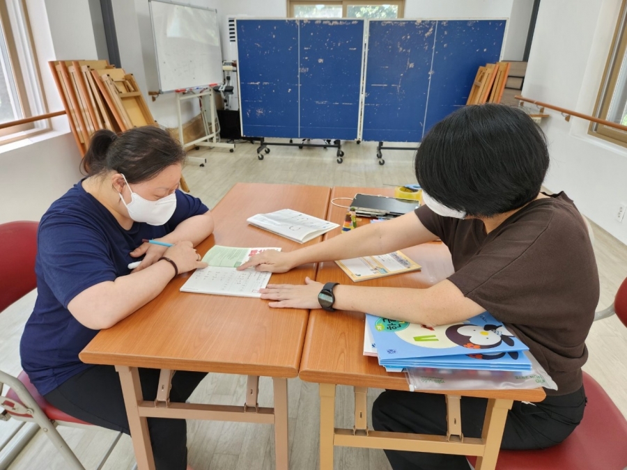 구몬학습지를 풀기 원하시는 입주자들과 구몬선생님이 함께 공부를 진행하였습니다.