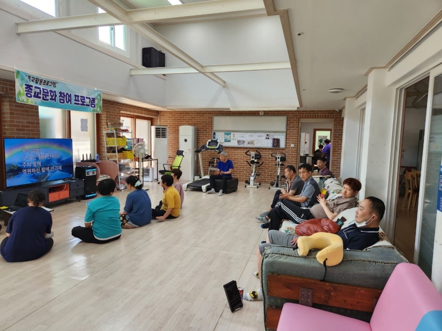 입주자들과 다목적실에서 종교활동을 진행하였습니다.