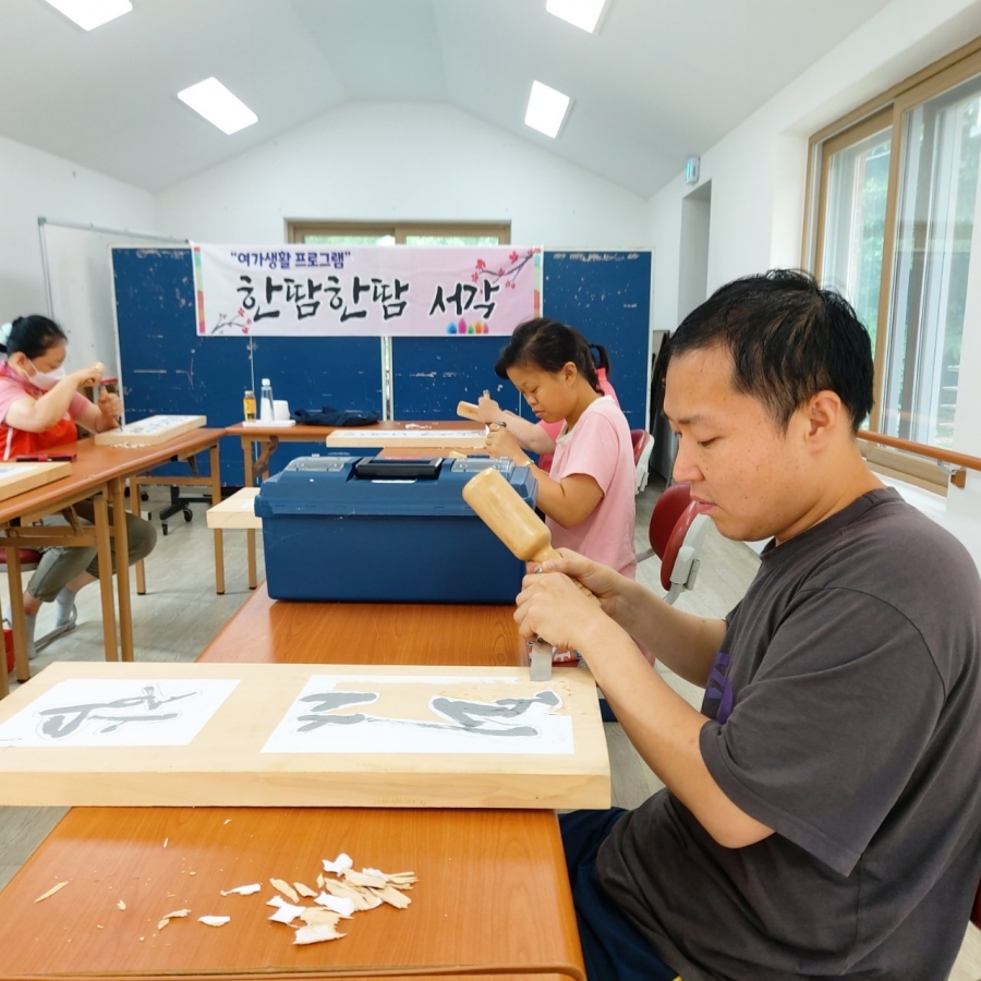 체력단련실에서 서각 프로그램을 진행하였습니다.